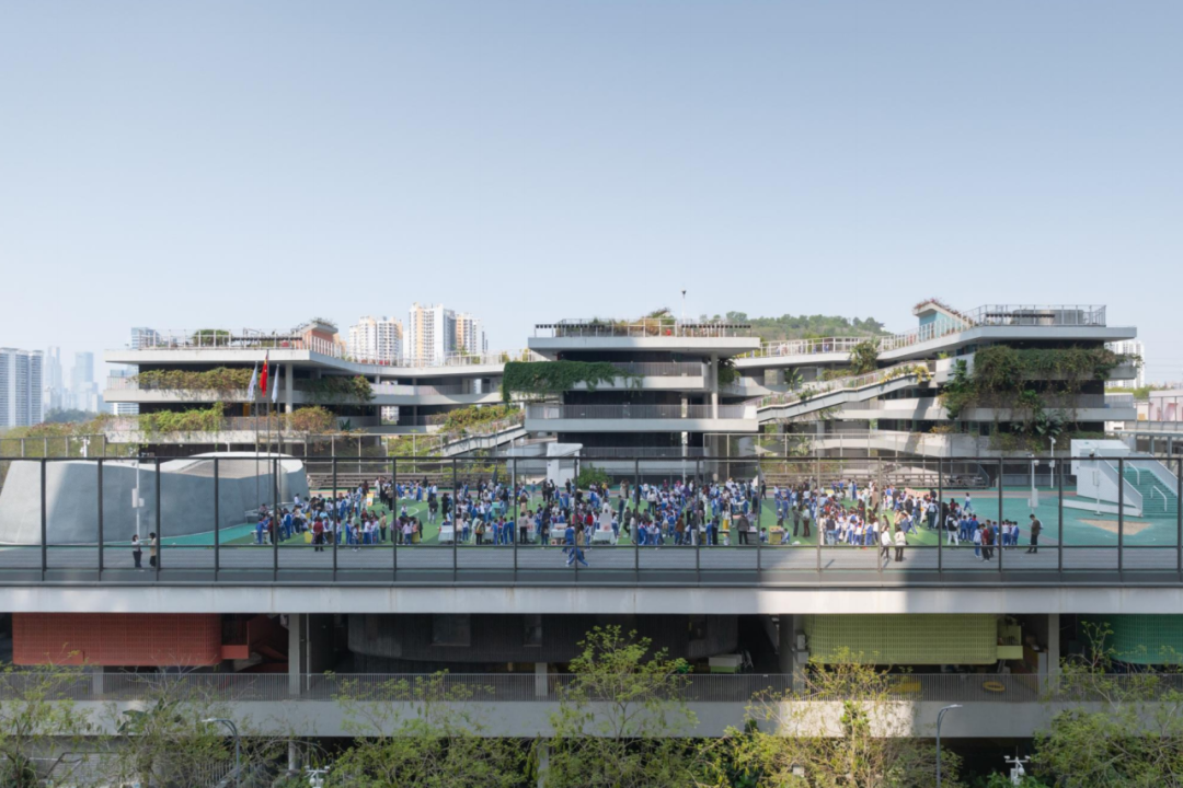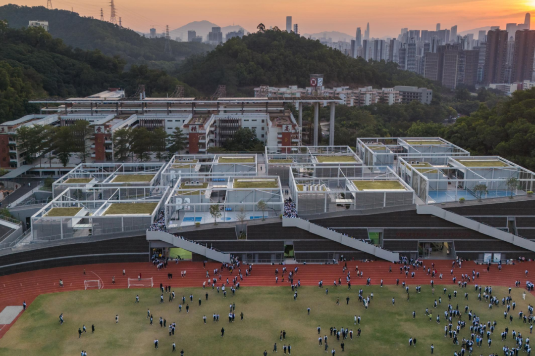 何健翔聚焦紅嶺實驗小學(xué)、紅嶺高中藝體中心與深圳美術(shù)學(xué)校三個項目,系統(tǒng)展示了高密度校園的解題思路。紅嶺實驗小學(xué)通過“雙復(fù)形”內(nèi)部庭院,在有限密度中編織出充滿活力的兒童社群空間;紅嶺高中藝體中心以“空間織造”策略回應(yīng)原始山體地形,實現(xiàn)建筑與自然肌理的有機縫合;深圳美術(shù)學(xué)校則以大膽的架空操場釋放地面空間,重構(gòu)了校園與城市的界面關(guān)系,為高密度城市中的校園建設(shè)提供了兼具在地性與前瞻性的解決方案。