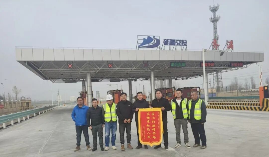12月6日,新疆沙雅縣交通運(yùn)輸局黨組副書記、局長(zhǎng)阿不力米提·牙庫(kù)甫一行專程趕赴聯(lián)投湖北路橋國(guó)道217線庫(kù)沙二標(biāo)項(xiàng)目現(xiàn)場(chǎng),一面繡有“匠心打造精品路 真情奉獻(xiàn)為人民”的鮮紅錦旗,被鄭重交到聯(lián)投湖北路橋建設(shè)團(tuán)隊(duì)手中。